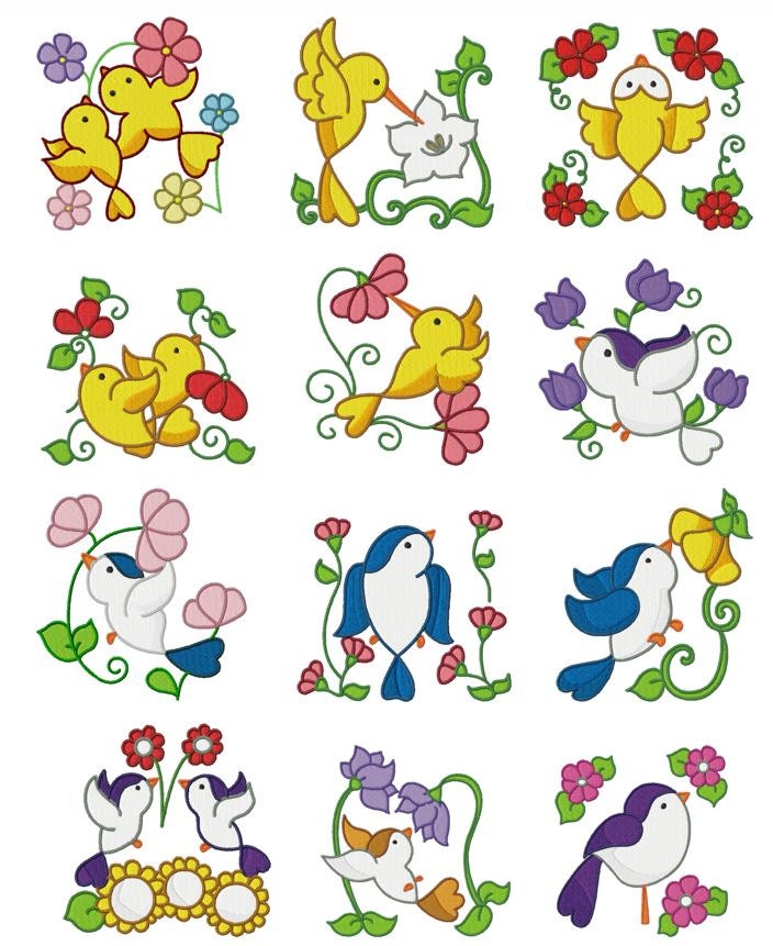 Bird & Flower Embroidery Design Zip File Download | Etsy