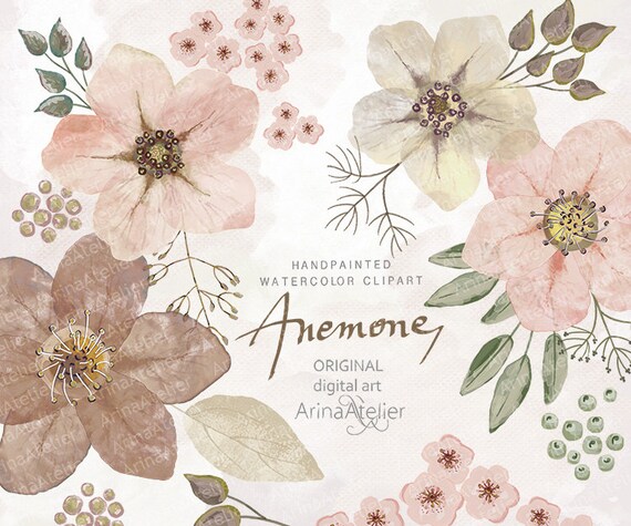 Anemones Watercolor Flowers CLIPART natural Handpainted