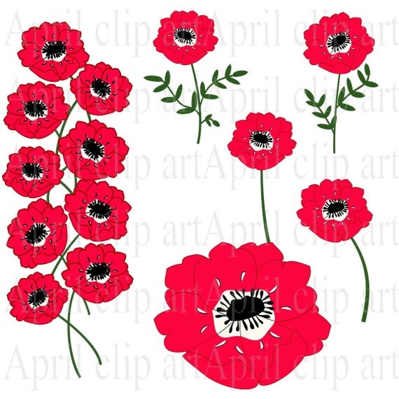 Flowers Clipart 8 Red Anemone graphics clip art set