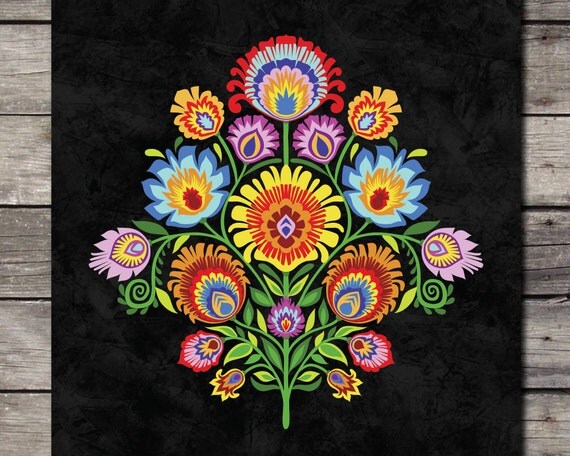 polish folk art flowers black - Google Search | Floral ...